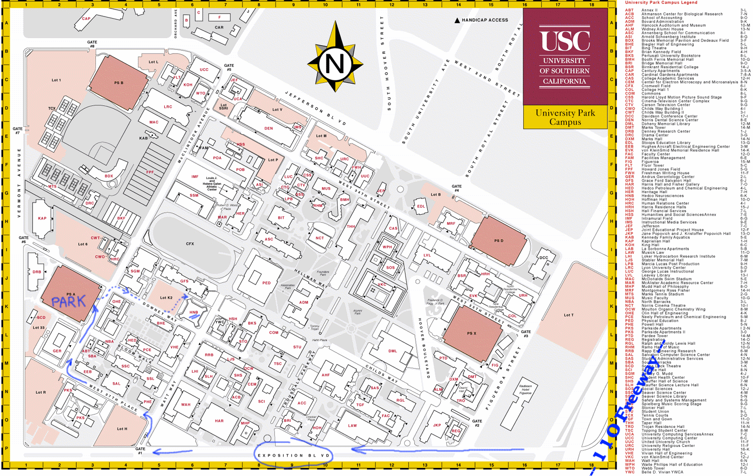We are located in the basement of the Hedco Neuroscience Building, on the USC University Park Campus in downtown Los Angeles. To come to USC, take the 110 freeway, and exit on Exposition Blvd, a couple of miles South of the intersection between the 110 and 10 freeways. Then follow the directions on this map. Beware that parking costs $8 unless you have made previous arrangements with us to have a parking permit reserved for you at the campus entrance gate. You may also want to check these official USC maps and driving directions. Prof. Itti's office is in Room 30A, and the laboratory and student offices are in Rooms 6, 9, 30 and 10A. Our Beowulf computer cluster is in Room 10, eye-tracking setups in rooms 7F and 13A, machine shop in room 11 and conference room in room 15. | ![]() |